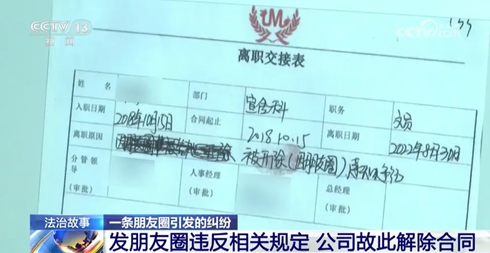 两天之后,刘女士接到公司汇报,因为她在一又友圈发布的言论违背公司律例轨制,影响团队氛围,毁伤公司形象,对公司变成严重任面影响,因此要澌灭和刘女士之间的干事左券。